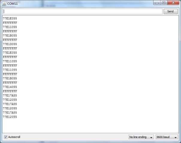 Punto de un número de control remoto hacia el sensor y ver lo que sale en el serial monitor al pulsar los diferentes botones. Usted debe ver salida similar a la imagen de arriba. ¿Nota que cada tecla genera un código ligeramente diferente? Estos códigos únicos nos permitirá escribir un bosquejo que reacciona a un código particular – es decir, un determinado botón en un mando a distancia.