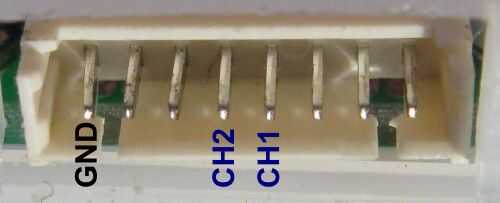 - Vendrá a la salida del generador de forma de onda de los pines marcados en la foto. (En el anclaje original de 8 pines, los pines CH1 y CH2 son azules, y el pin GND es negro).