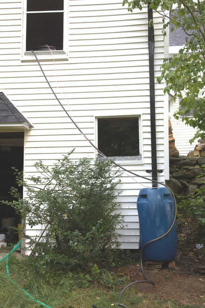 Queríamos que la fuente de agua que un barril de lluvia, pero para reducir las molestias durante la prueba, sacó agua de un pozo over-productive cerca. Usted verá el tabique hermético de bien en las fotos.