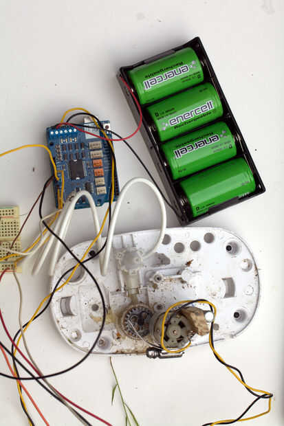 Un microcontrolador Arduino Uno se vuelva a encender las bombas y para evitar quemar los motores. Arduino también utiliza un sensor de continuidad para probar el nivel del agua en el tanque de suministro de manera que la bomba no funcione en seca. Un escudo del Arduino Motor enciende las bombas Super Soaker y se apaga.