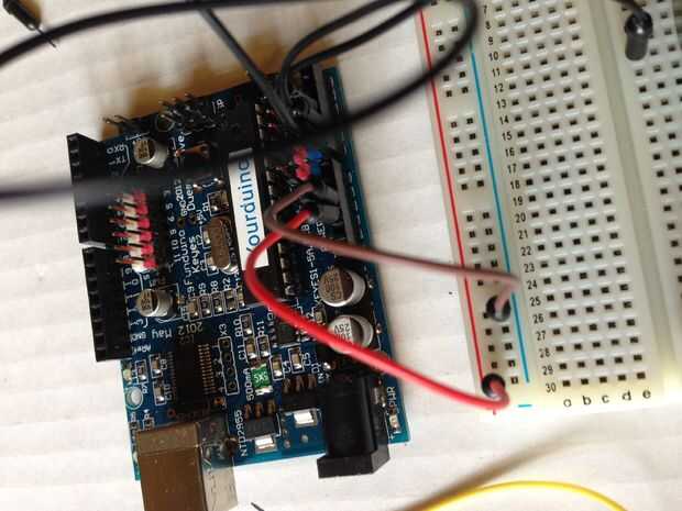 - Conecte el extremo positivo de los potes que es la derecha en la fila de 5 voltios.