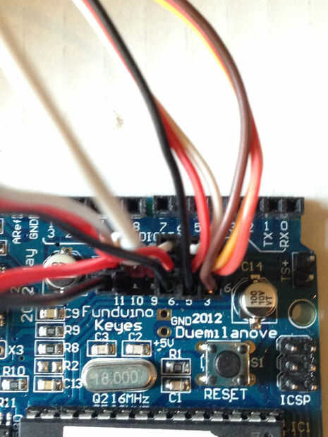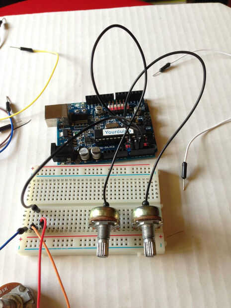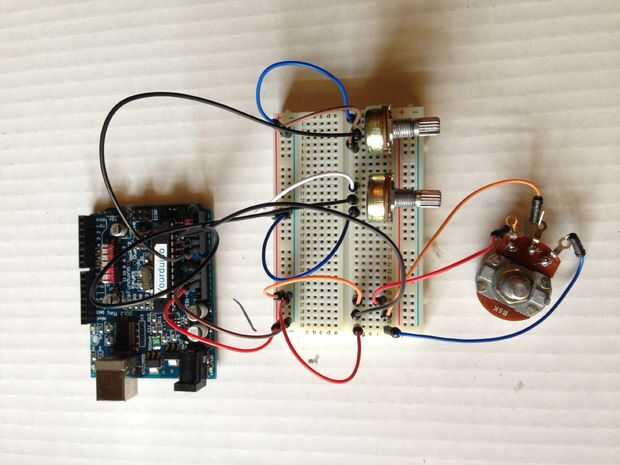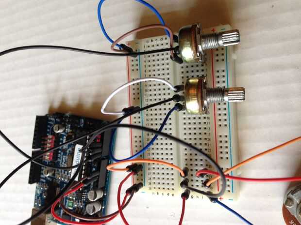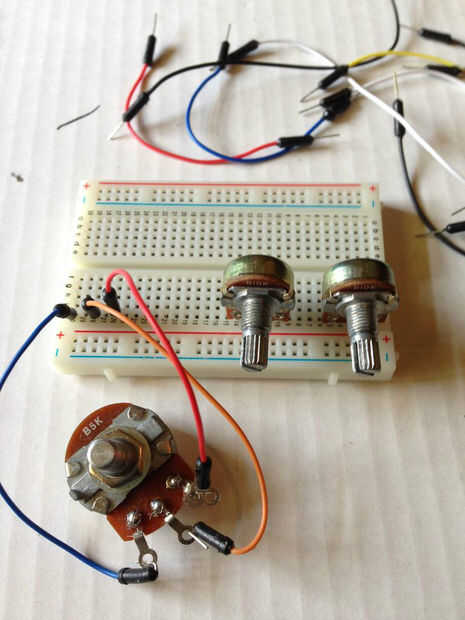 Bien ahora crearemos el controlador que permita al brazo robótico para moverse y hacer cosas. Cosas interesantes que añadir. La primera imagen muestra el cableado del potenciómetro y, es muy importante que tenga cuidado en seguir este formato. Lo que hice fue apenas el enchufe los 5 volts y gnd de la placa directamente en los terminales de la placa porque claramente 3 potenciómetro de pernos no caben en un agujero de 5 voltios.