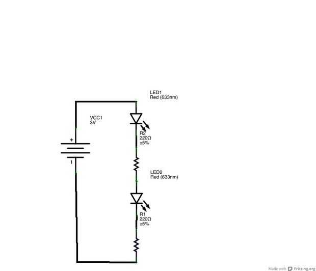 Empiezo con 5V de mi Arduino. Cuando coloque dos LED uno encima del otro que en serie y ambos tendrán 2,5 voltios para intentar quemar. Normalmente necesitan 5 V por lo que sólo queman muy pálidos o no.