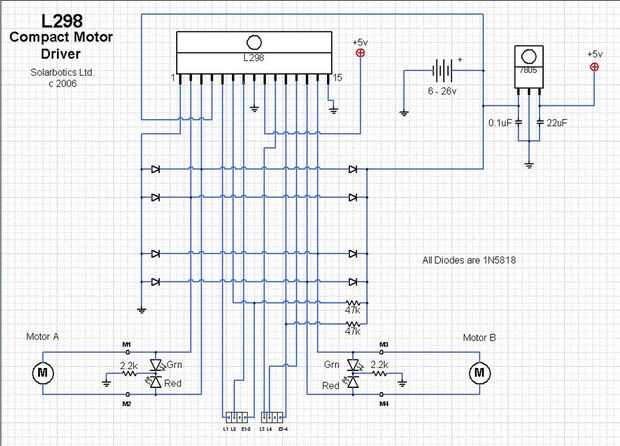 L3 y L4 son conectado a arduino los pines 9 y 10 respevtively .que control motor (B) en los pernos 13,14 del l298 (hacia delante y hacia atrás).