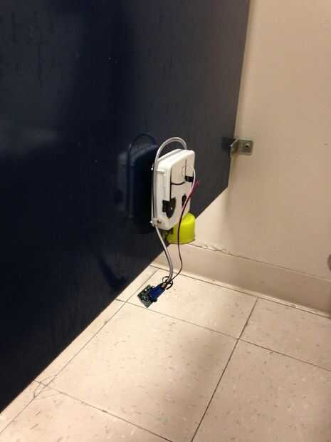 La broma final está programado para que cualquier momento es el movimiento percibido, reproduce un archivo audio al azar (mina fueron todos los sonidos brutos, es un baño después de todo). Como se puede ver en la foto el aparato se coloca de modo que no puede verse pero el detector de movimiento puede detectar movimiento en cualquier momento alguien acerca al urinario. He puesto unas botas con un par de pantalones sobre ellos para hacer la parada mirada ocupada. El baño lo utilizado en tiene un caudal bastante constante de personas, mediante el montaje de imán y ganso cuello era posible poner esto en marcha en cuestión de segundos. No fue hasta media tarde que mis compañeros de trabajo consiguieron finalmente sospechosos y de investigar, les encantó tanto que no revelan la broma y disfrutar de su nuevo secreto para el resto del día.