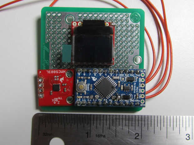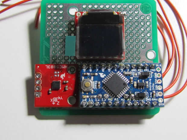 ¿Recuerde cómo no poner encabezados en el tablero de magnetómetro? Bien, ahora usted tiene algunas opciones. Se podría colocar al lado el Arduino donde se sobresalen un poco y podría requerir más recortes en su caso, o usted podría simplemente pegarlo en otra parte en su caso. Es lo que hice. Si se trata de una tarjeta caliente bajo el sol, entonces ser cansado de derretir el adhesivo de cinta de doble cara. Tornillos y tuercas probablemente no funden a menos que su coche puede acercarse al sol, pero tienes otros problemas de que preocuparse que la brújula DIY en ese momento.