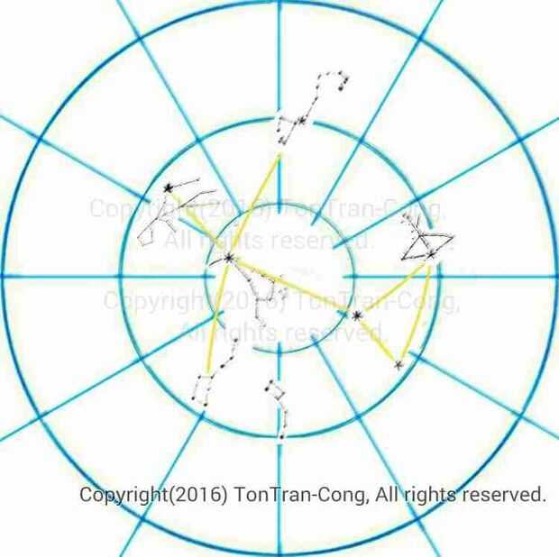 Se han identificado alfa Arcturus en Boote (19 grados, 14 hr), Vega (39deg, 18hr36m), Deneb (45 º, 20hr41m) y Altair (9 grados, hr 19,8).