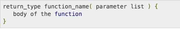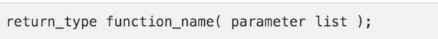 El cuerpo de la función es lo que debe ser realizado cuando se llama a la función. Si no es una función nula, el cuerpo de la función debe terminar con una instrucción return seguida de la variable de tipo de valor devuelto de la función. Si la función no se coloca antes de la función principal, es necesario una declaración de función. Esto se coloca derecho en las bibliotecas. En el cuadro 2se muestra un ejemplo de una declaración de función.