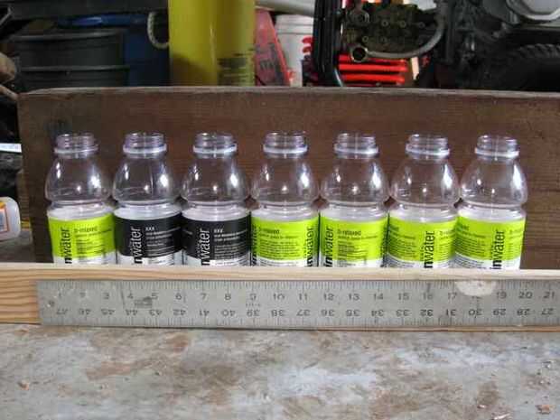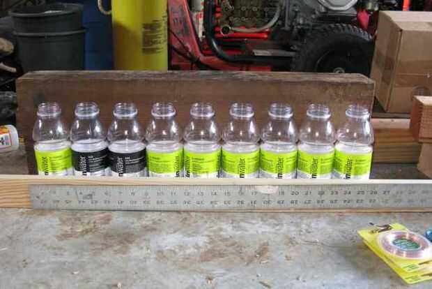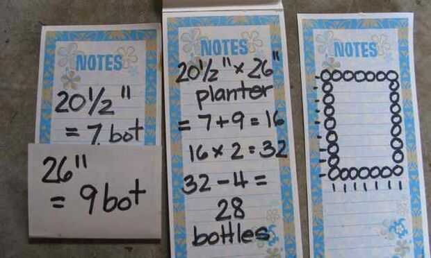 Contar Cuántas botellas necesitas para la longitud y cuántos para la anchura de su caja. Sume los números.