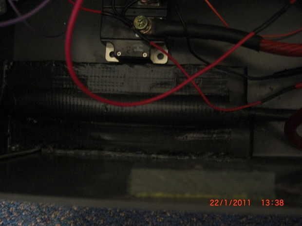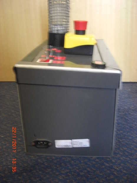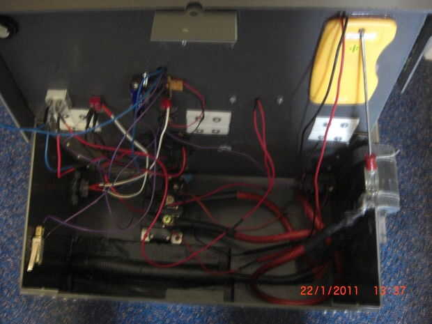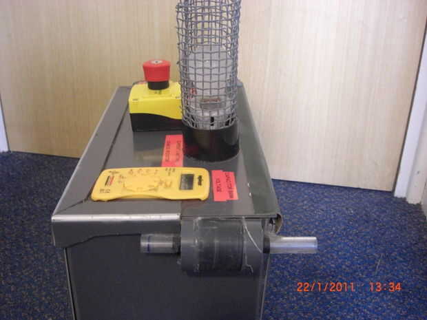 Un simple voltímetro se ha montado al recinto para que el voltaje en el Banco de capacitores puede ser monitoreado en tiempo real para comprobar el estado de carga y comprobar prevención de sobrecarga.