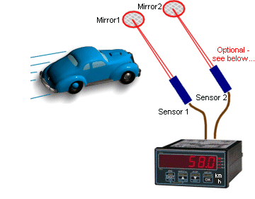 Dos puertas ligeras ponen aparte a una distancia fija y electrónica se utiliza para medir el tiempo entre las dos puertas de paso y la velocidad se muestra en una pantalla LED de segmento. Tengo los esquemas y planes para el dispositivo pero no tenía el tiempo para construir.