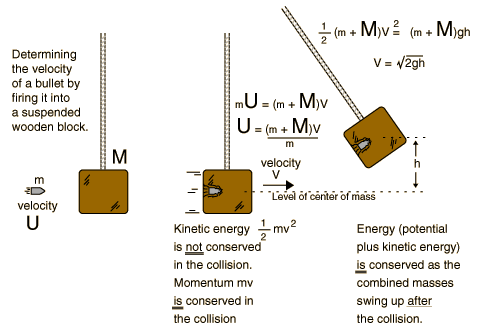 Una masa de material deformable está suspendida de una viga de longitud fija; el proyectil es disparado en el péndulo y palos en la masa. La energía cinética del proyectil se transmite en el péndulo y el desplazamiento máximo medido. Entonces se puede calcular la energía cinética del proyectil por el desplazamiento vertical como trabajo = dh * g * m donde dh es el cambio en la altura, g es la constante gravitacional y m es la masa combinada del péndulo y el proyectil.