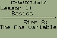 Para ser honesto, la variable Ans no a importante, pero es bueno si usted quiere optimizar el código. También puede 'definir' y escribiendo por ejemplo de 5 en una línea.