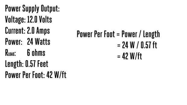 Este "watts por pie" es una indicación de cuán caliente conseguirá el cable. No puede dibujar una temperatura exacta de esto debido a dependerá de cómo y dónde trabajas. El alambre se enfría a una velocidad que depende de la temperatura de su ambiente de trabajo. Pero te da una buena forma de comparar la salida relativa de fuentes de alimentación diferentes.