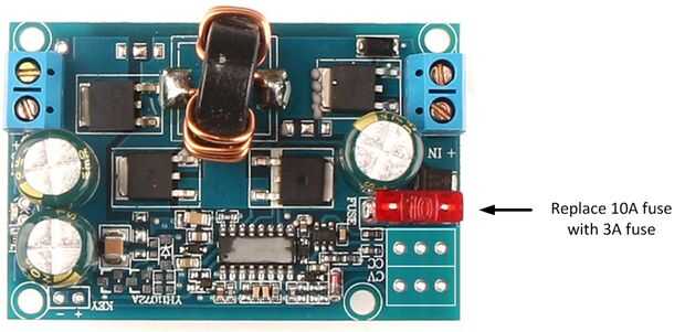 11. Retire el fusible de salida 10A y reemplace con un fusible de 3A.