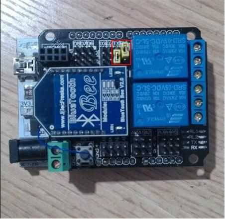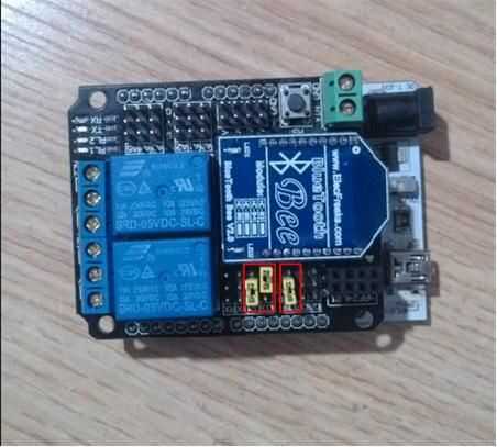1. Inserte el canal 2 relé protector UNO como abajo y recuerde la ubicación de tapa corta D2 – D3 duda — estruendo, D6 conectado a VCC.