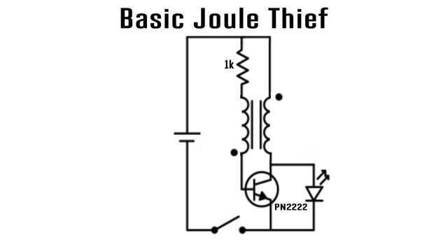 Este circuito utilizado en este proyecto es modificado "Joule Thief." Un Joule Thief es un auto-oscilante refuerzo de tensión. Toma una señal de bajo voltaje constante y la convierte en una serie de pulsos de alta frecuencia a un voltaje mayor.