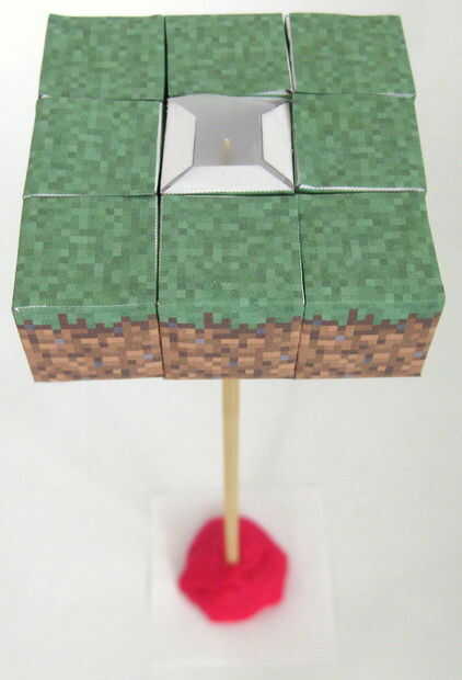 - Casi todo se pliega en forma de bloque, así que mirar cada pieza corte y averiguar cómo va ser doblado en forma de bloque. Generalmente se trata de doblar las piezas hacia atrás entre cada ficha blanca, como se muestra para los bloques de hierba en el paso 5.