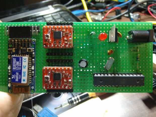 Si usted está construyendo su propio tablero de regulador necesita un chip FTDI para programar y enviar datos en serie. Placa Arduino ya tiene un convertidor de usb a serial, por lo que no necesita nada en ese caso. Tuvimos un EZ-Link de Bluefruit que forma inalámbrica se puede programar el arduino mediante bluetooth. También se utiliza para transferir inalámbricamente g-código para el microcontrolador. Necesita conectarse correctamente a atmega328p controlador para que funcione. Las conexiones se muestran en los esquemas. Yoiu puede leer más acerca de Bluefruit EZ-Link sobre lo aragoneses ADAFA.