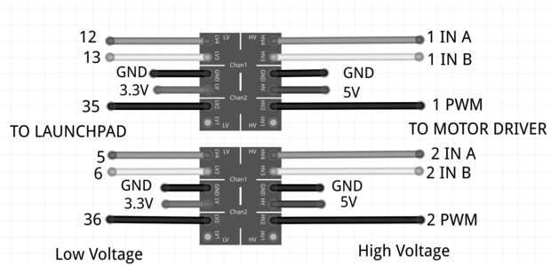 Se puede ver el circuito de interfaz de motor de la C.C. a Tiva C Launchpad usa un controlador de motor.