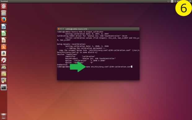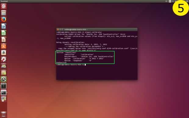 - Abrir el terminal de Ubuntu, tipo "xinput_calibrator" y haga clic en entran. (Se abrirá una nueva ventana con una "X" en cada una de las cuatro esquinas).