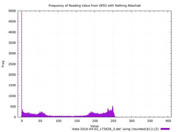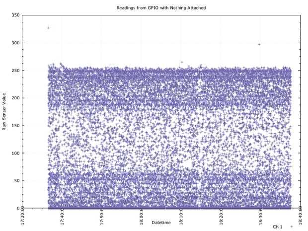 - Lecturas de los 4 sensores cuando no hay nada conectado. Cuando esto ocurre, el pin se encuentra en un estado "flotante", y la salida no es previsible. Está en un estado indefinido, que no es ni 0 ni 1. En electrónica, esto se conoce como el tercer Estado, circuito abierto o cable flotante.