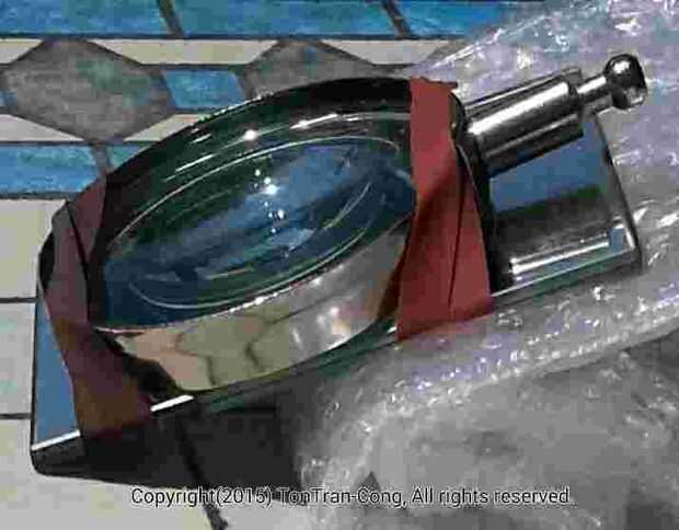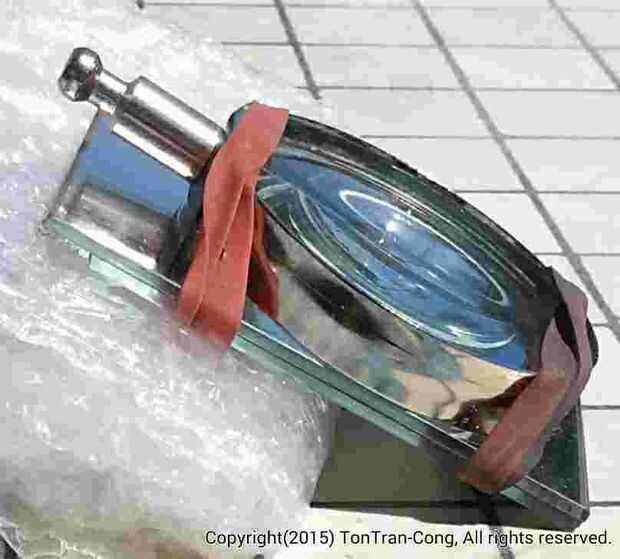 Figuras: Un espejo unido a una 60mm claro, lente de vidrio incoloro. Este sistema con cociente de la abertura de d/f=1/1.1 puede iluminar un cigarrillo en sólo 15 segundos. Este es mi favorito creado. Figura: Incluso una cuchara de sopa esférico pulido con alto cociente también puede encender un cigarrillo.