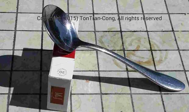 La cabeza de la cuchara en uso aquí es casi un espejo esférico cóncavo con muy alta relación de d/f=1/0.4. Sin embargo no se enciende los cigarrillos muy rápidamente como se esperaba porque no es un espejo exacto y la imagen del sol en su superficie focal es no claramente definida y demasiado dispersos.