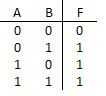 Echemos un vistazo al diagrama de verdad de la puerta OR. Como puede ver, como una de las entradas es 1, la salida será 1 y sólo si todas las entradas son 0 el resultado será 0. La operación también es conocida como adición booleana y está escrita por lo tanto, como F = A+B. Observe que hay sólo "alta" y "BT" y no hay tal cosa como "superior". Por lo tanto 1 + 1 sigue igual a 1 no 2. Tenga en cuenta que todas estas operaciones son análogas a las operaciones matemáticas, pero no estrictamente lo mismo.