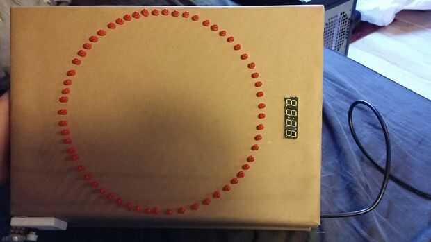 Nuestro proyecto es un reloj funcional completo. En la parte delantera hay 60 LEDs, uno para cada segundo, y en la parte superior del reloj que hemos colocado un segmento LED pantalla que mantiene un registro de los minutos y horas. Como una característica extra que hemos instalado un potenciómetro conectado a los LEDs y al girar el potenciómetro control que de los 60 LEDs que va a la luz. El objetivo principal con esta función adicional debía ser capaz de poner en un código secreto que luego se cierre la caja, como una caja fuerte.