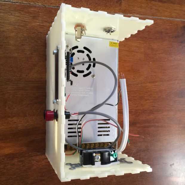 - Conecte todos los cables de alimentación a la fuente de alimentación (siguiendo el esquema) antes de cementar el panel de la izquierda en lugar. Puede ser un ajuste apretado, así que planificar con cuidado.