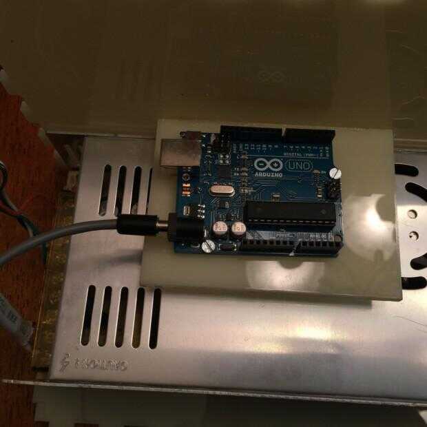 Con la plataforma Arduino en su lugar, puede conectar el Arduino, a continuación, el panel trasero al panel inferior de cemento.