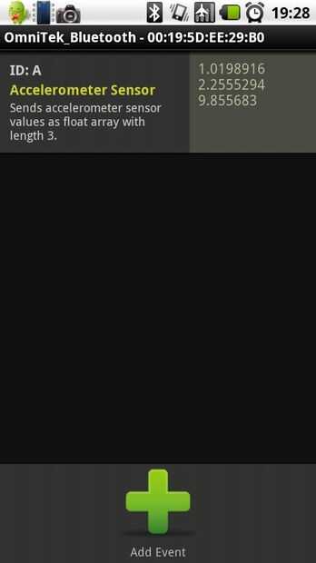 -No conecte aún. Añadir un evento de acelerómetro haciendo clic en el cuadro rojo. (Fig. 11). Usted debe obtener algo como pic. 12
