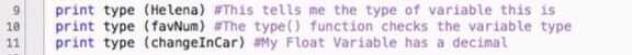 Si desea saber el tipo de variables están utilizando uso "tipo". Para ver qué tipo de variables se utiliza, utilice "Imprimir" y poner el nombre de la variable entre paréntesis.