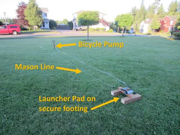 Nota: la botella de 2 litros y una presión demasiado pequeña pueden no expulsar el tapón de presión y no levanta.  Demasiada presión y la abrazadera de la plataforma de lanzamiento un poco dará causando presión tapón dar, y liberará la presión o más en serio el 2 litros botella puede no.
