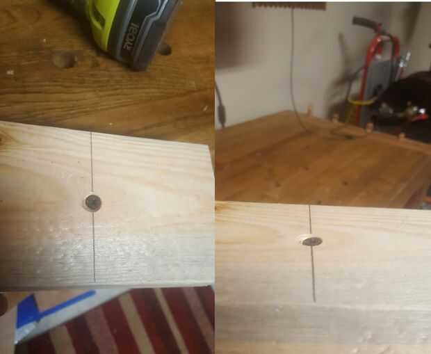 Ahora tienes un paralelo y red de ángulo de 90 grados, la segunda capa debe ser un complemento. Simplemente mida el 2x4s y atornille las tablas en la primera capa. Otra vez, he utilizado los orificios piloto, el fregadero contra bit y 16" espaciado. No es necesario utilizar los agujeros de bolsada en los extremos para la segunda capa. Ya que tiene una sólida primera capa Fundación simplemente Atornille los extremos en la primera capa. No se olvide de contra los agujeros del fregadero.
