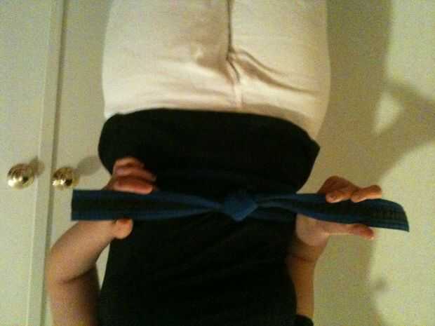 El cinturón [IX] es negro, con un número variable de franjas amarillas bordado en un extremo con su nombre, el otro extremo generalmente tiene el nombre de tu escuela o asociación. A menudo la correa más esperada, un cinturón negro simboliza la madurez. Yo soy un primer dan. Esto simplemente significa que he logrado una raya dorada en el final de mi correa.