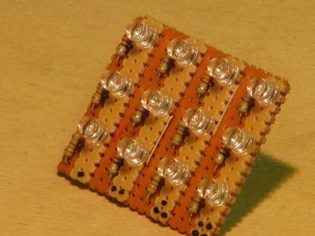 Prueba con cuidado el conjunto aplicando 5V al cable rojo, y a su vez de puesta a tierra cada banco. Cada conexión deberá encenderse un LED 4 diferentes. Si funciona, has completado la Junta de matriz de LED.