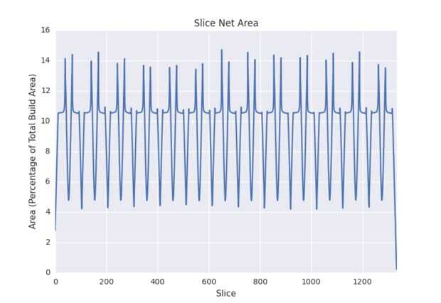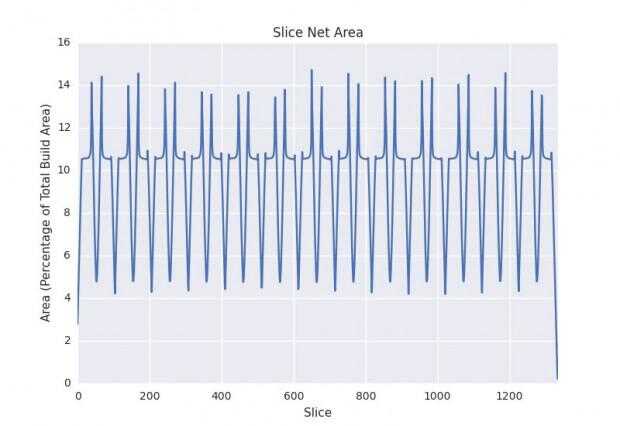Usted notará en el gráfico superior a la estructura del enrejado que la superficie global (la suma de todos los píxeles blancos en un sector dado) nunca supera el 15% de la rebanada. La superficie global debe permanecer por debajo del 15% para que las fuerzas de succión, que son proporcionales a la superficie, no llega a ser mayor que la fuerza de la resina curada, la fuerza de rasgón de la ventana PDMS y la fuerza normal que la impulsión linear y el motor pueden entregar. Si las fuerzas de succión exceden cualquiera de estos y luego los modos de fallo son como sigue: