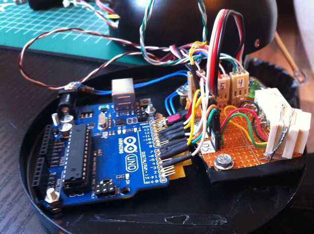 10mm sobre el robot sólo está conectado el arduino, un ressistor de 100 ohm va del pin 13 con el conector positivo de los led y el negativo va a tierra.