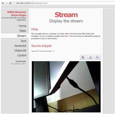 Figura 13 – frambuesa Pi MJPG streaming alcance de http://rasberpi_ip:8080