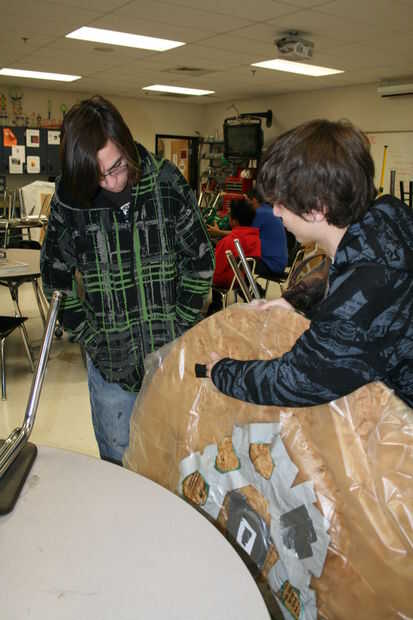 6. después de completar el paso anterior vas a colocar la lona o la cortina de ducha de plástico (más suave hacia abajo) debajo del círculo (plataforma) que ha creado. Asegúrese de que el toldo o cortina puede cubrir totalmente la parte inferior de la plataforma con cerca de 8 pulgadas de exceso o así para poderla sujetar a la plataforma. Recorte el exceso que no es necesario.