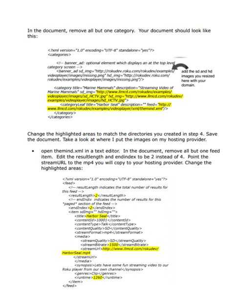 Abra themind.xml en un editor de texto. En el documento, quitar todo pero un artículo de alimentación. Editar el índice resultlength y final para ser 2 en lugar de 4. Punto streamURL a mp4 que copiará a su proveedor de hosting. Cambiar las zonas resaltadas: