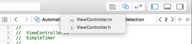 4 D. haga clic en los círculos superpuestos en la esquina superior derecha de la ventana de Xcode para comenzar a crear métodos para los botones de Start/Stop y botones de pausa/reanudar.