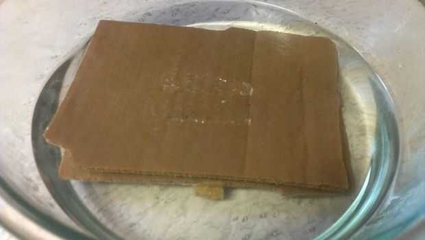 - Exprimir todo el exceso de humedad de la cartulina. Retirar la capa superior suave, exponiendo los corrugaciones.