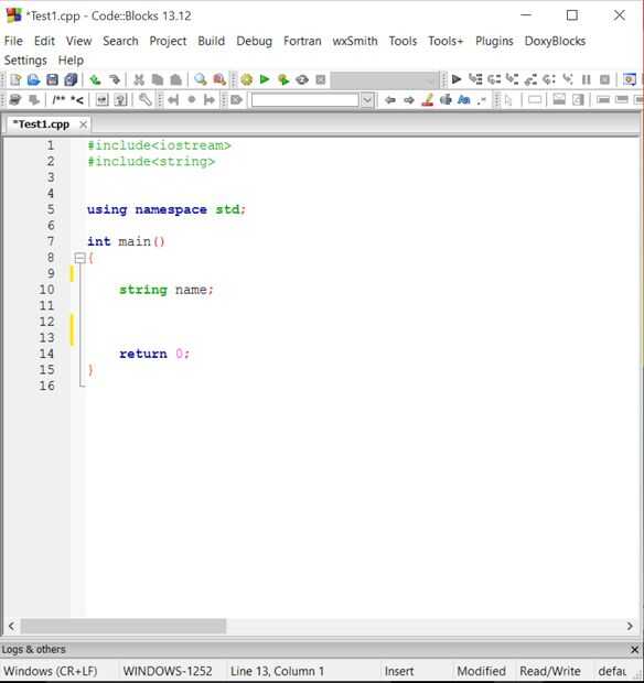 Dentro de los soportes vamos a declarar nuestro primer y solamente la variable para el programa, "nombre de la cadena;"