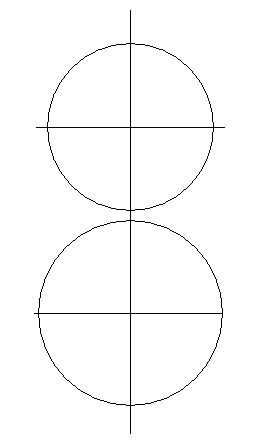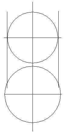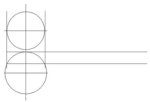 Dibuja dos líneas verticales más en 90 grados hacia abajo de los bordes exteriores del círculo superior, o tangente al borde exterior del círculo superior, abajo para intersecar el círculo inferior. El arco del círculo menor entre estas dos líneas es donde el tubo superior pondremos en contacto con una inferior. Sólo asegúrese de que la línea vertical central y estas dos líneas son todos paralelas entre sí.