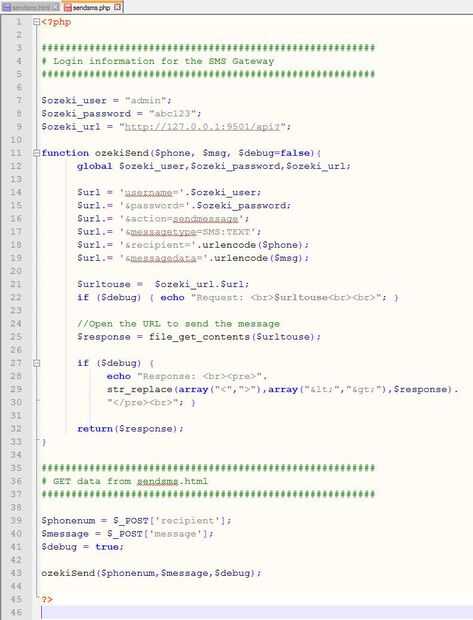 Estudiando el fragmento de código, puede ver que el programa genera la variable urltouse utilizando los parámetros anteriormente descritos. Cuando el visitante del sitio web está listo con el mensaje y hace clic en el botón Enviar, el servidor Web enviará esta variable urltouse como una petición HTTP a la pasarela de SMS. Después de esto, el gateway SMS enviará nuevamente una respuesta HTTP que autentica que el gateway SMS ha recibido el mensaje y está listo para enviar hacia el proveedor de servicio móvil. (Tenga en cuenta que el SMS se enviará mensaje al teléfono del destinatario de hecho, si se ha configurado el módem GSM o conexión IP SMS correctamente.)