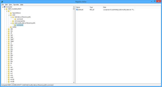 Si usted es hecho, hacer los mismos pasos para HKEY_CLASSES_ROOT\ * \shell\Add modificar fecha como nombre de archivo prefix\command y cscript.exe A:\autoHotkey\add.date.vbs "%1".