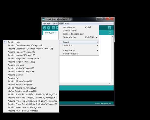Herramientas > Junta Directiva >Arduino Uno es seleccionado... (Mis equipos todos tienen el Bootloader de Arduino UNO y otros bootloaded a petición!)